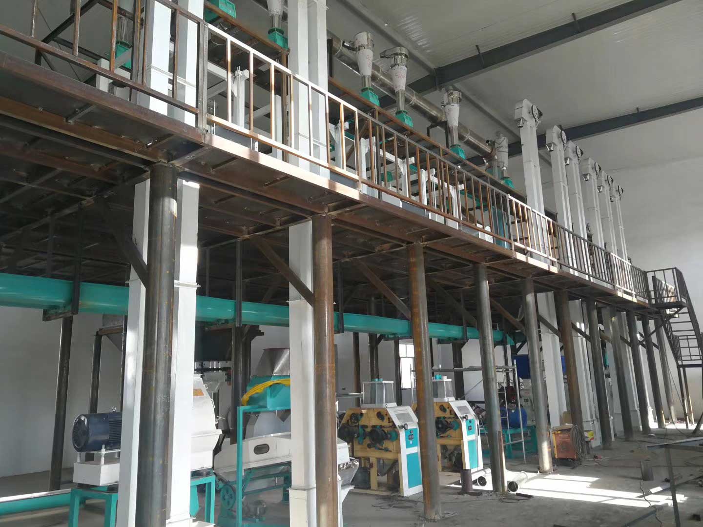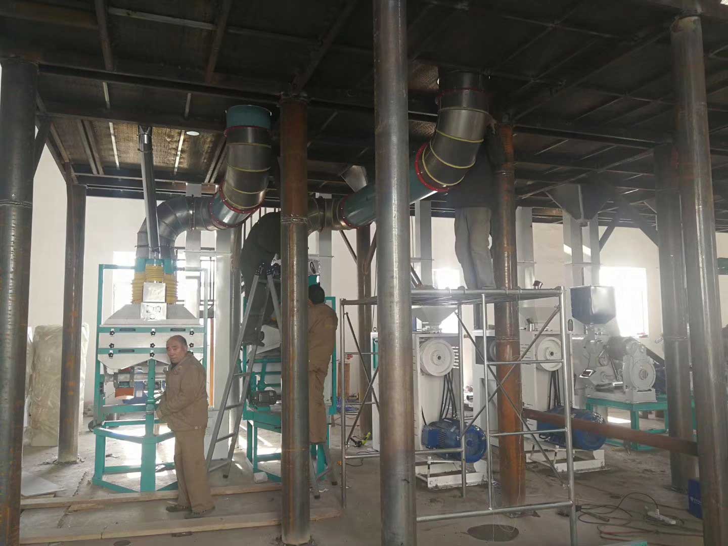 內蒙古赤峰100噸玉米加工生產(chǎn)線安裝現(xiàn)場;